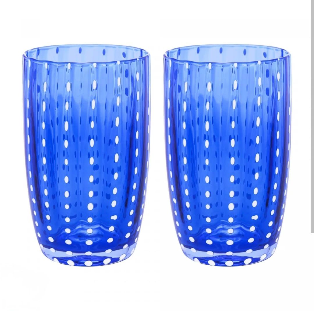 Elegância e estilo para a sua mesa! Este conjunto de copos em vidro Azul conta com um design moderno e sofisticado, estampado com delicados poás brancos que trazem um toque retrô e ao mesmo tempo contemporâneo.