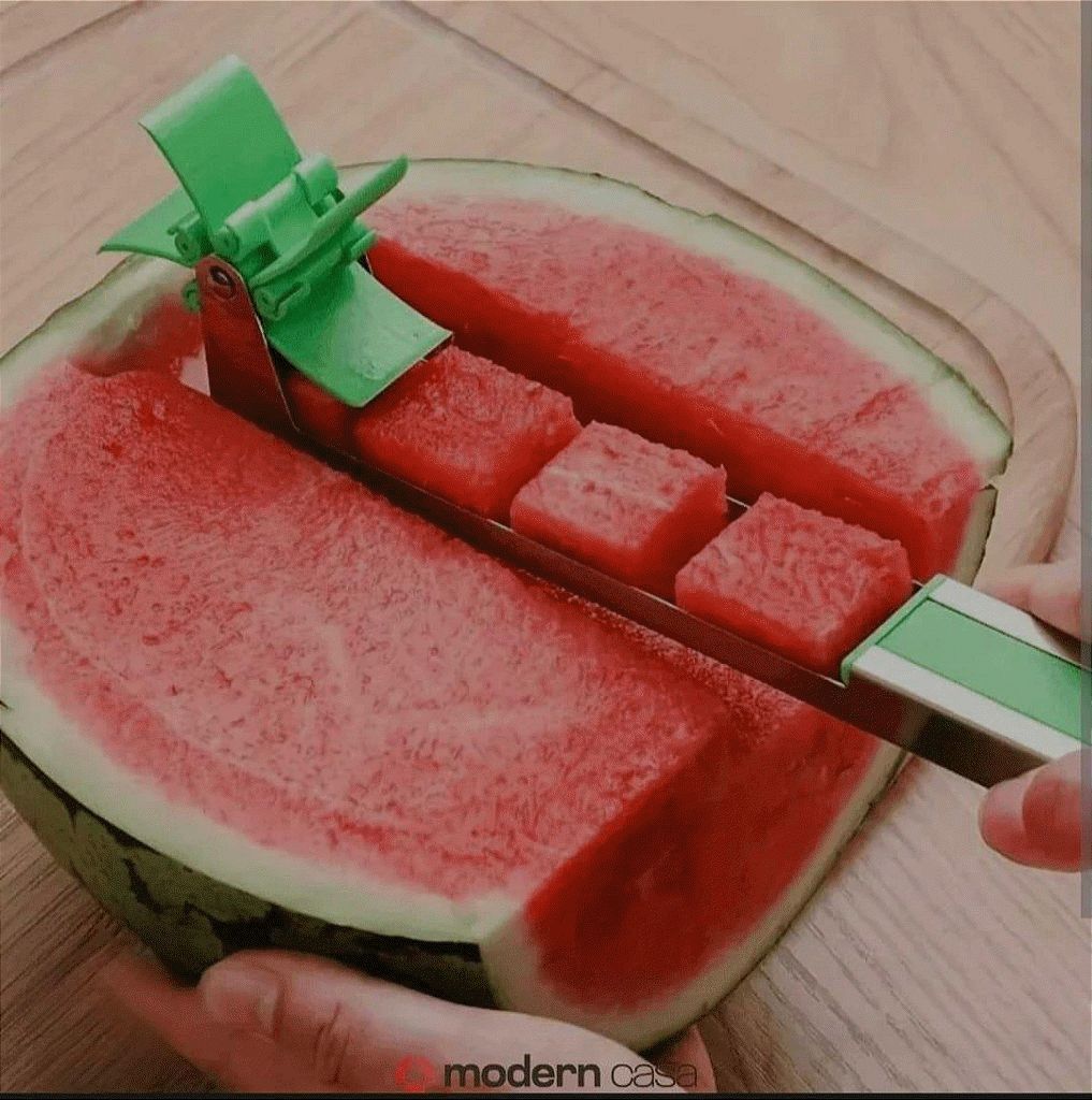 O Fatiador de Melancia Clink traz praticidade e precisão para o preparo de frutas. Feito em aço inoxidável e plástico resistente, corta e fatia melancias com rapidez e segurança. Seu cabo ergonômico garante conforto no uso, enquanto o design moderno facilita o manuseio. Medidas: 30x3x7,5cm. Ideal para uso doméstico e profissional. Fácil de limpar e resistente à oxidação.