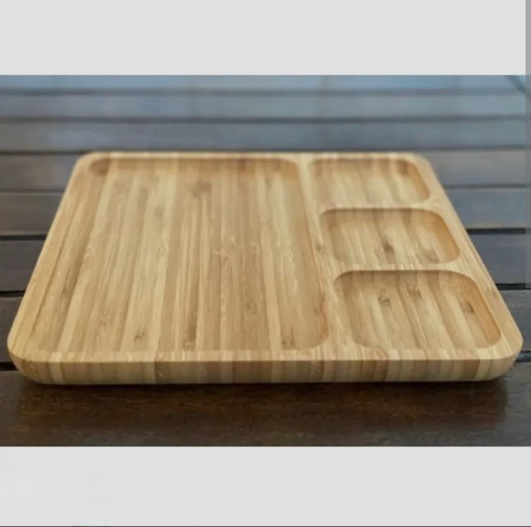 Com design moderno e quatro divisórias, é ideal para servir petiscos, frios, molhos ou acompanhamentos de forma organizada e charmosa. Seu acabamento liso e a coloração natural do bambu valorizam a beleza e a funcionalidade da peça.