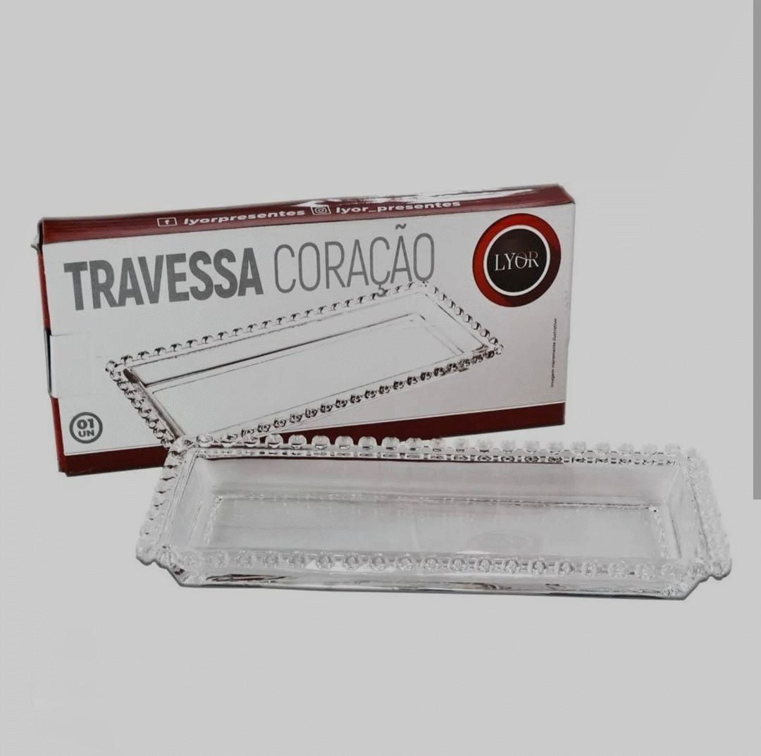 Travessa de Vidro Coração – Marca Lyor A travessa de vidro da linha Coração da marca Lyor é perfeita para servir com elegância e charme. Com bordas decoradas em formato de pequenos corações, traz um toque romântico à mesa. Ideal para servir doces, petiscos, frios ou sobremesas. Produzida em vidro de alta qualidade, é resistente, fácil de limpar e combina com qualquer ocasião. Medidas: 30 cm x 13 cm x 3 cm. Contém: 1 unidade. Imagem meramente ilustrativa.