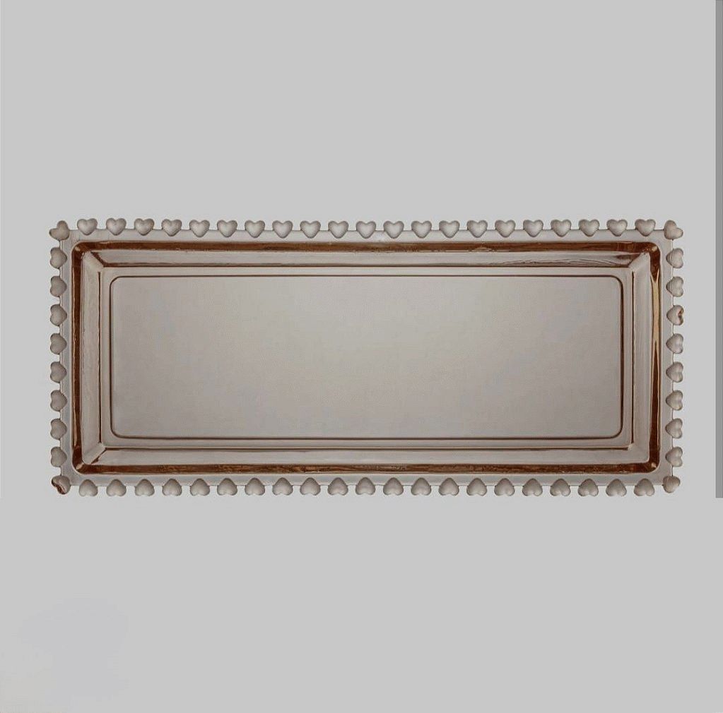 Travessa de Vidro Coração Âmbar – Marca Lyor Elegante e charmosa, a travessa de vidro da linha Coração na cor âmbar é ideal para servir doces, petiscos ou sobremesas com estilo. Com bordas decoradas em formato de pequenos corações, traz um toque romântico e sofisticado à mesa. Feita em vidro de alta qualidade, é resistente e fácil de limpar. Medidas: 30 cm x 13 cm x 3 cm. Contém: 1 unidade. Imagem meramente ilustrativa.